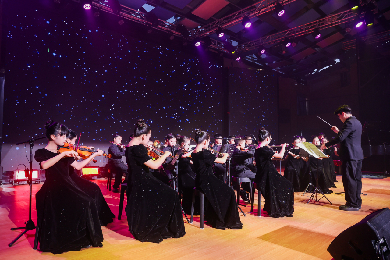 山高管弦樂團的吉他手們化身時光織夢人,指尖輕撥間,琴弦震顫出青春的私語。孩子們用清澈童聲應(yīng)和,稚嫩嗓音與吉他的溫暖和弦交織成詩,讓聽眾在旋律中重逢童年的星辰與晚風(fēng),那些藏在時光褶皺里的純真記憶,正隨著音符輕輕漫上心頭。