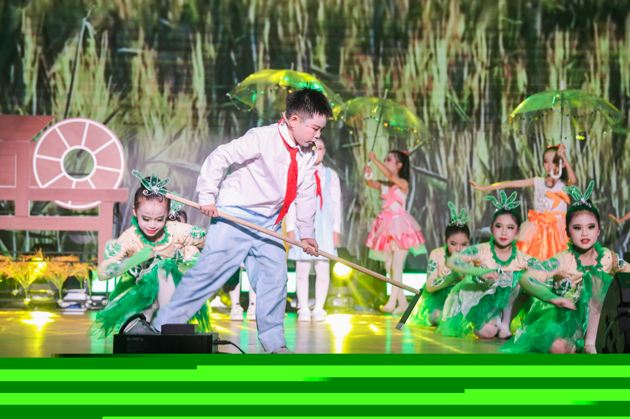 三年級學(xué)子的音樂劇《麥浪歌弦?小滿綺夢》頗具詩意。跳動音符編織麥浪絮語,輕盈舞步勾勒田園輪廓。“夜鶯啼綠柳” 吟誦聲中,孩子們化身麥穗精靈,于 “小滿不滿” 韻律里旋轉(zhuǎn)。衣襟沾陽光,指尖掠穗芒,節(jié)拍訴說成長哲學(xué):不必追趕苛求,把握 “恰好” 節(jié)奏即生命饋贈。這場與節(jié)氣對話的演出,讓詩意與智慧流淌,譜 “小滿即安” 的童年贊歌。