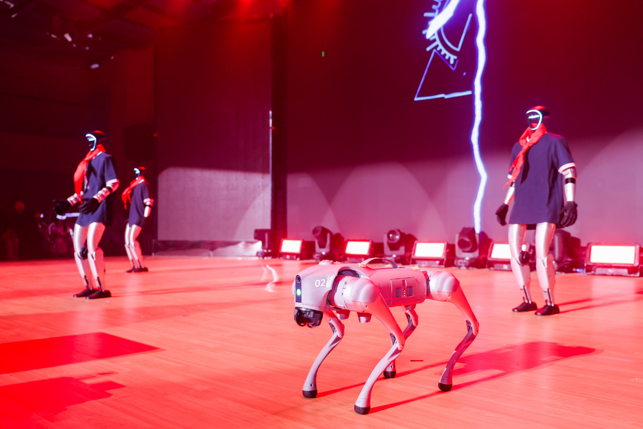 舞蹈團以炸裂的肢體語言詮釋自由與力量,每一個高難度動作都迸發(fā)著熱血能量。當機器狗踏著機械節(jié)拍加入舞陣,舞者與科技伙伴的默契互動瞬間點燃全場?!