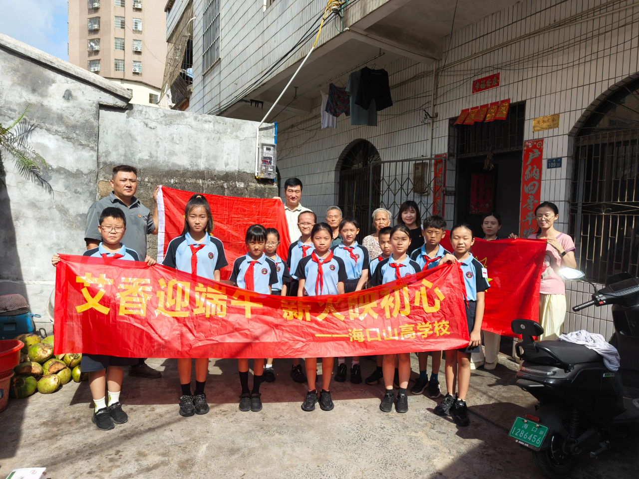 端午時節(jié),粽葉飄香。??谏礁邔W(xué)校黨支部帶領(lǐng)四年級學(xué)部部分少先隊員,懷揣著崇敬與關(guān)懷,走進(jìn)山高村,開展了一場意義非凡的端午慰問老黨員活動。少先隊員們手捧粽子和精心準(zhǔn)備的慰問品,將濃濃的節(jié)日祝福送到老黨員們的身邊,聆聽他們講述那些崢嶸歲月里的紅色故事,讓紅色基因在幼小的心靈中生根發(fā)芽。