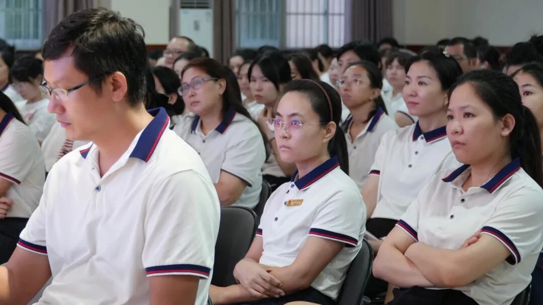 會(huì)議尾聲,全體教職工一同重溫了我校的“一訓(xùn)三風(fēng)”。在熟悉的校訓(xùn)校風(fēng)、教風(fēng)學(xué)風(fēng)中,我們?cè)俅文哿怂枷牍沧R(shí),堅(jiān)定了育人初心。
