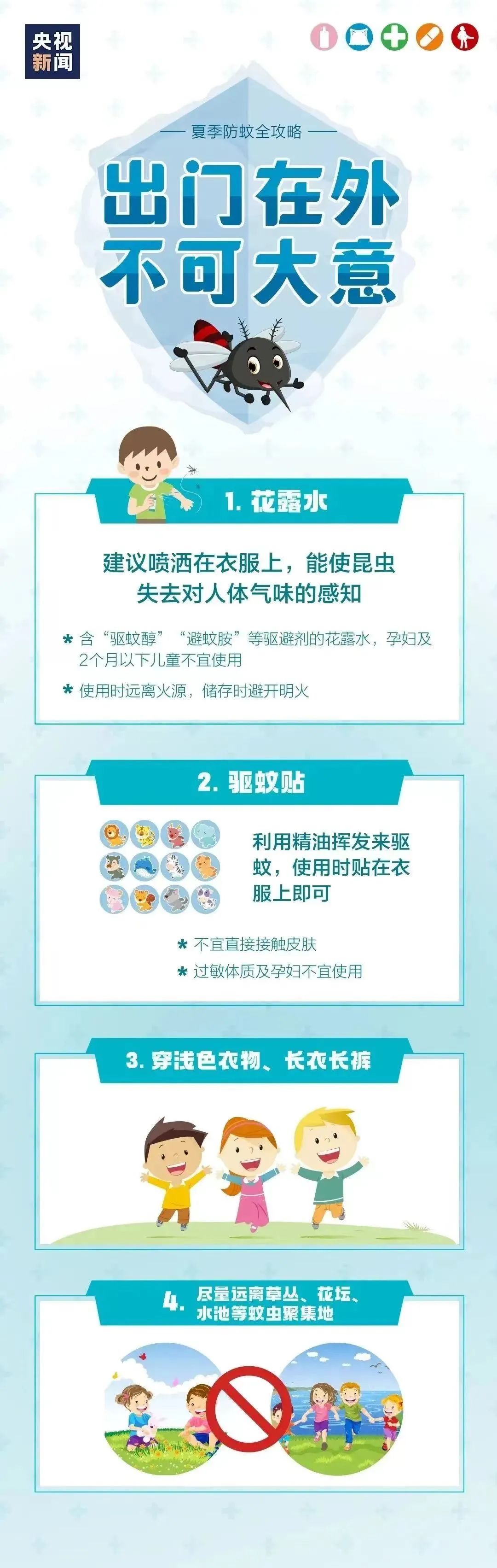 2.避免在伊蚊出沒(méi)頻繁時(shí)段(早上和傍晚)在樹(shù)蔭、草叢、涼亭等戶外陰暗處逗留。