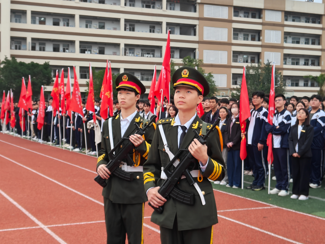 惠風(fēng)和暢,國歌奏響。莊嚴(yán)肅穆的氛圍中,全體師生目光如炬,肅立敬禮,向國旗致以崇高的敬意。開學(xué)典禮也隨著冉冉升起的五星紅旗正式拉開序幕。