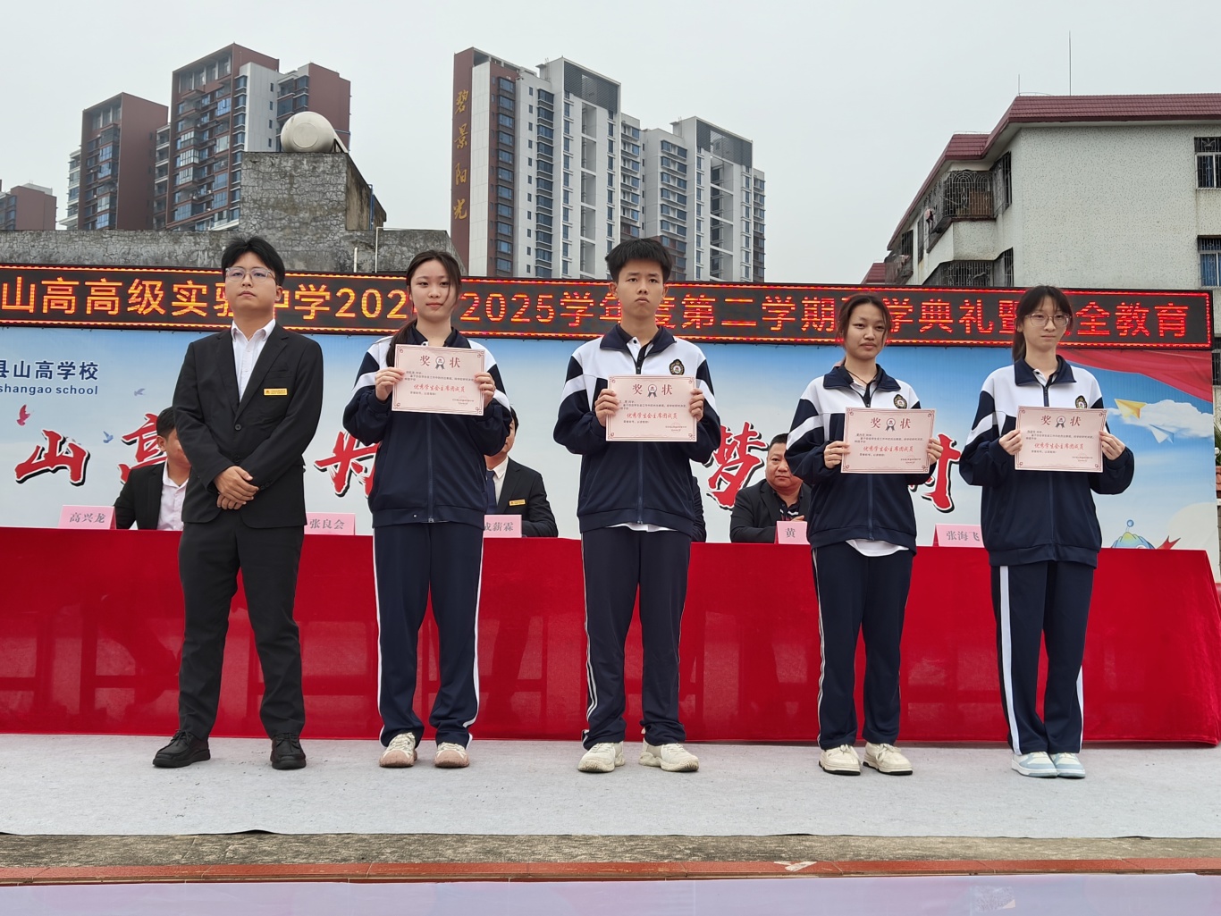 優(yōu)秀團(tuán)員心向團(tuán)旗,信念為筆,繪就青春忠誠之卷。主持人宣讀了榮獲優(yōu)秀共青團(tuán)員榮譽(yù)稱號(hào)的學(xué)生名單,彭江江副校長(zhǎng)為獲獎(jiǎng)同學(xué)頒獎(jiǎng),并表示熱烈的祝賀。