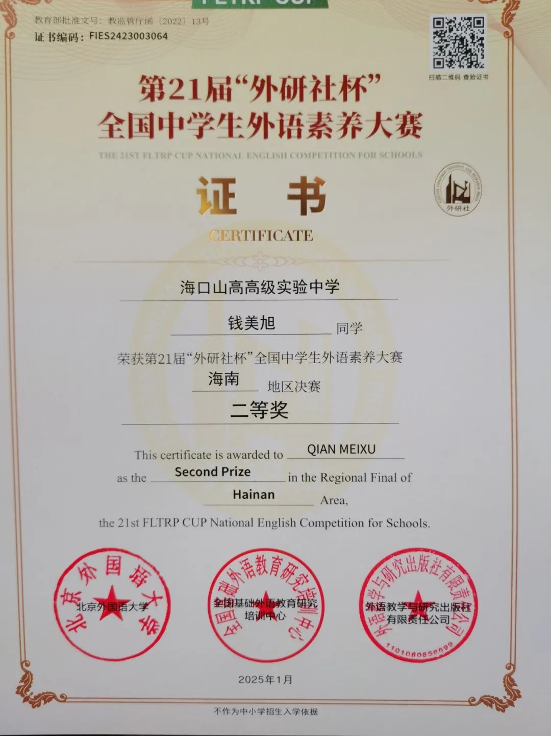 喜報(bào) | 熱烈祝賀我校學(xué)生在第21屆“外研社杯”全國(guó)中學(xué)生外語(yǔ)素養(yǎng)大賽中榮獲佳績(jī)-圖片6
