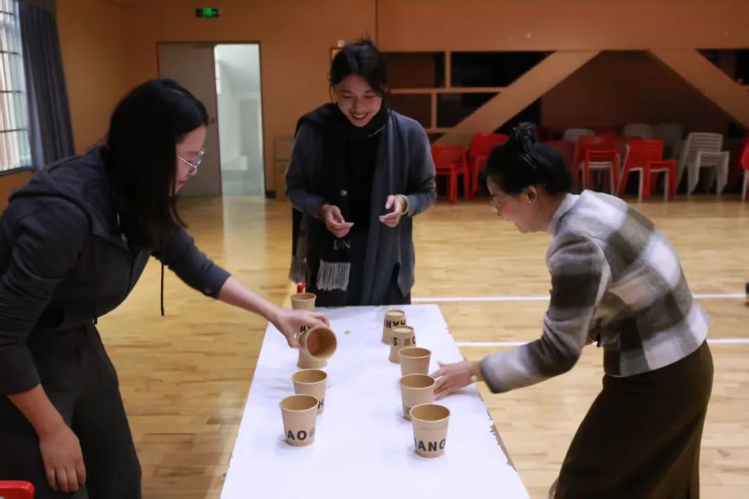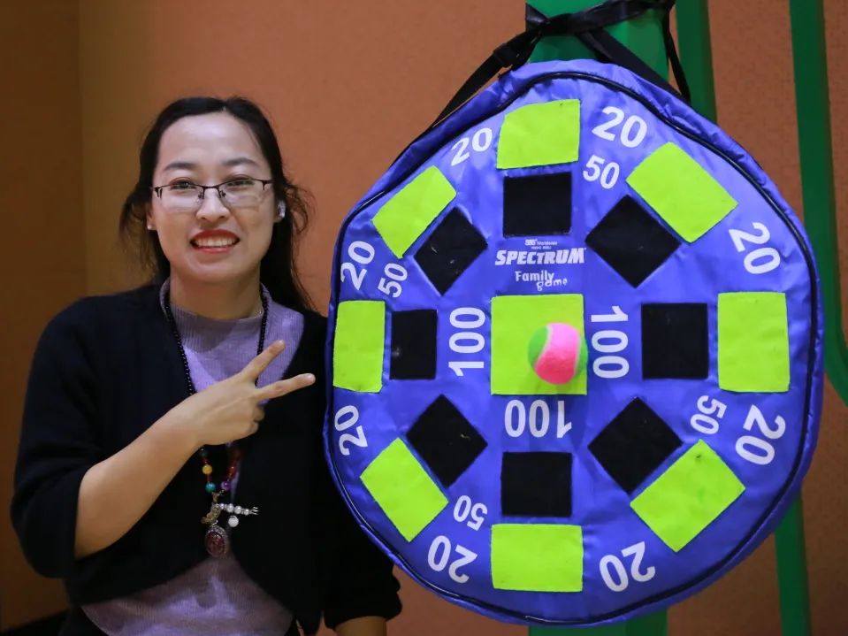 在運動和游戲區(qū),大家體驗套圈、丟沙包、翻杯子等趣味運動或游戲,歡聲笑語充滿了整個會場。