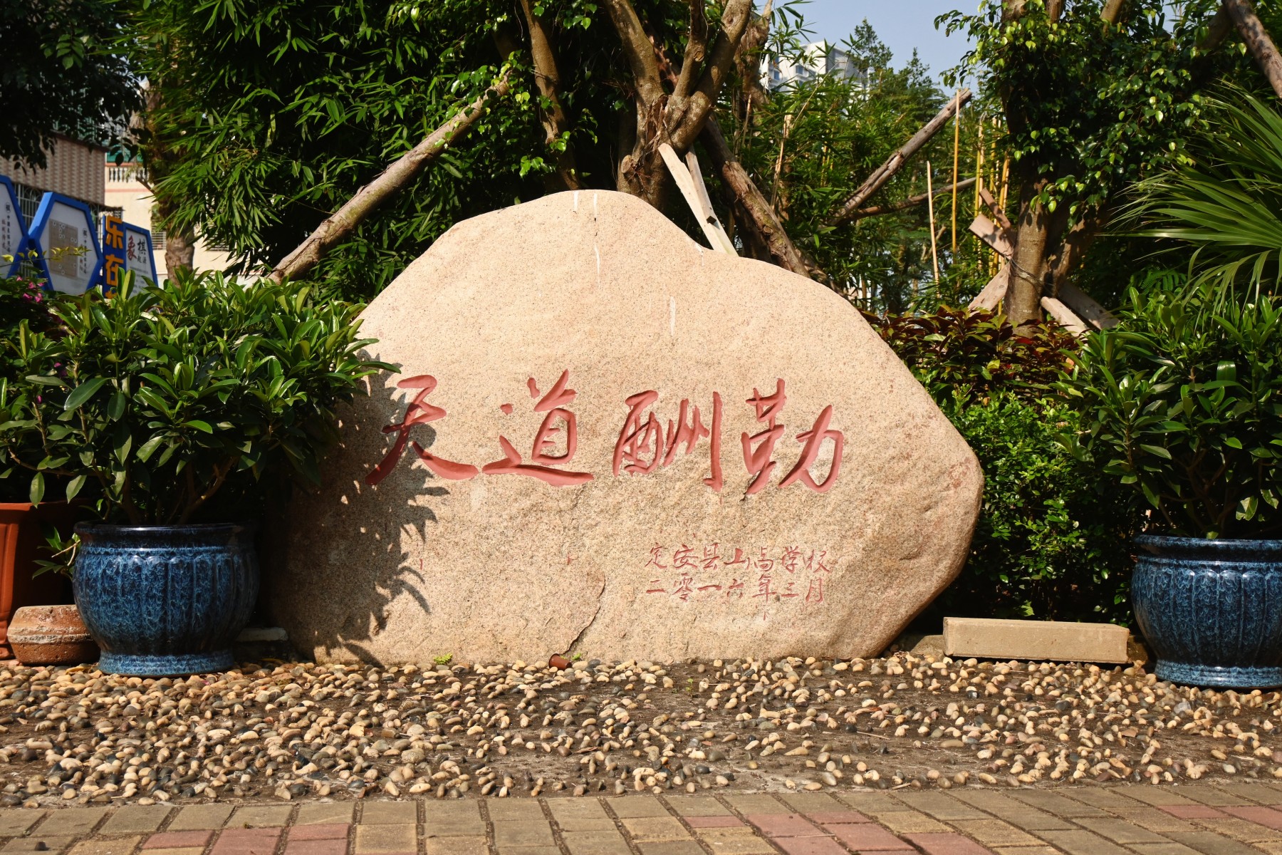 ? ? ? ?學校以“志存高遠,腳踏實地”為校訓宗旨,以“敬業(yè)愛生,嚴謹高效”的教風原則,堅持“務(wù)實、創(chuàng)新、高效、進取”的價值觀理念。努力做到三個堅持,堅持兼容并蓄、改革創(chuàng)新、和諧發(fā)展的辦學理念;堅持幫助每一個學生認識自己,發(fā)展自己,成就自己的教育理念;堅持面向?qū)W生,面向社會,面向國際,面向未來,與時俱進,持續(xù)發(fā)展,做一所一流的研究型學校。 二. 校園環(huán)境 校園建筑大氣美觀,設(shè)計新穎,教學樓之間回廊相連,渾然一體,錯落有致,彰顯山高氣質(zhì);校園處處是人文,點點皆景觀。每一尊塑像、每一方綠地、每一塊石頭都成為教育載體,傳遞山高文化;校園干凈整潔,綠樹紅花,交相輝映,詮釋山高文明。