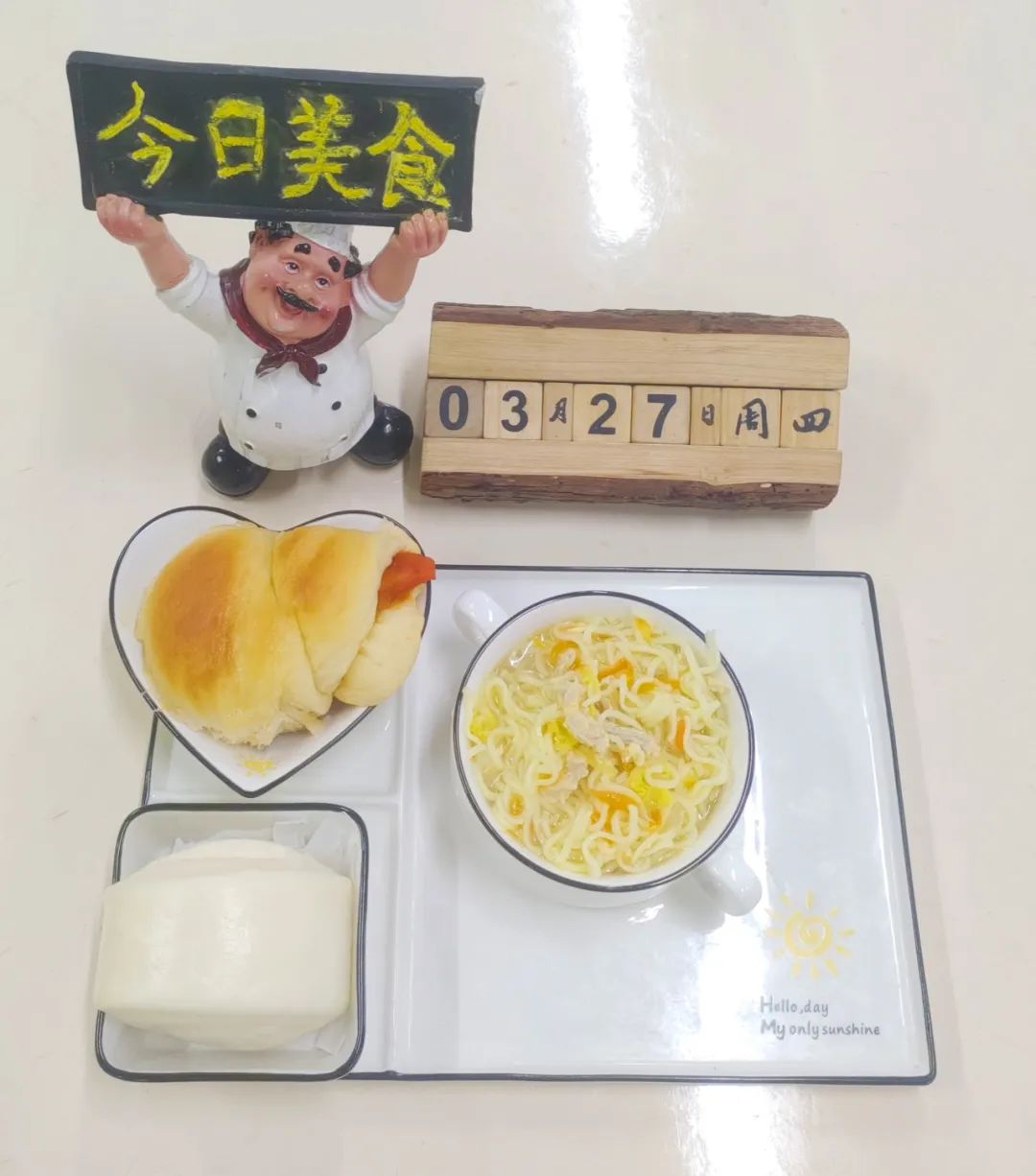 雞排面包、奶香饅頭、青菜瘦肉面條
