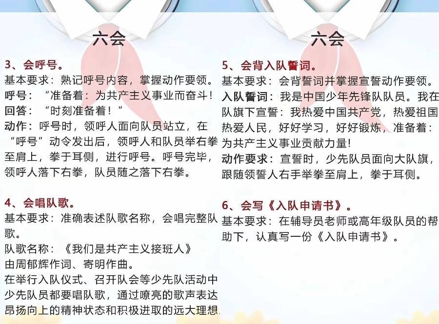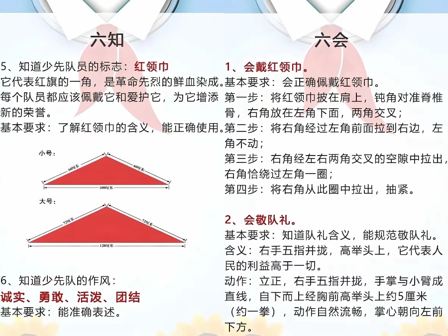 “六知六會”是少先隊員成長的核心知識技能。輔導(dǎo)員老師和大隊委干部分別進行了深入的講解和示范。