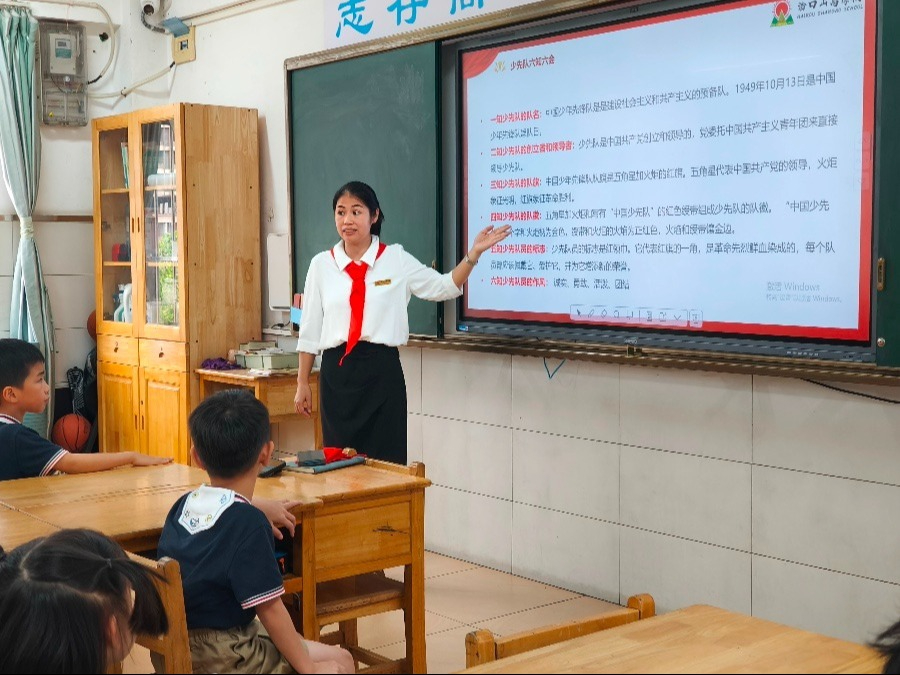 為幫助一年級學(xué)生深入理解并掌握少先隊的相關(guān)知識,體驗少先隊的榮耀與責(zé)任,2025年5月12日,??谏礁邔W(xué)校的輔導(dǎo)員老師們攜手大隊委干部深入一年級的各個班級,開展了富有深遠意義的入隊前培訓(xùn)活動。 ?